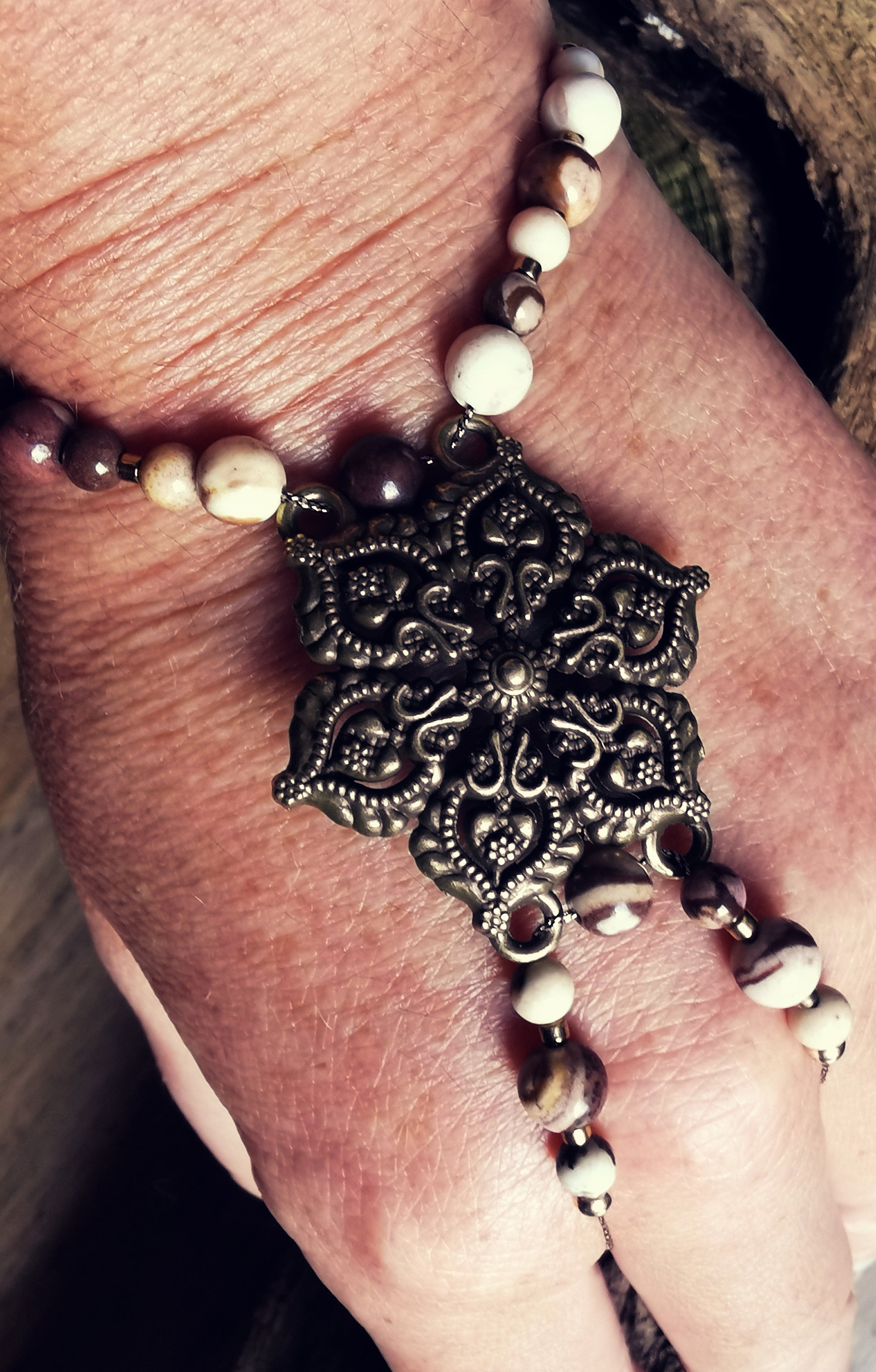 GAYA ELEMENTS – Ankle & Wrist Bracelet with Australian Zebra Jasper and Brass Rosette