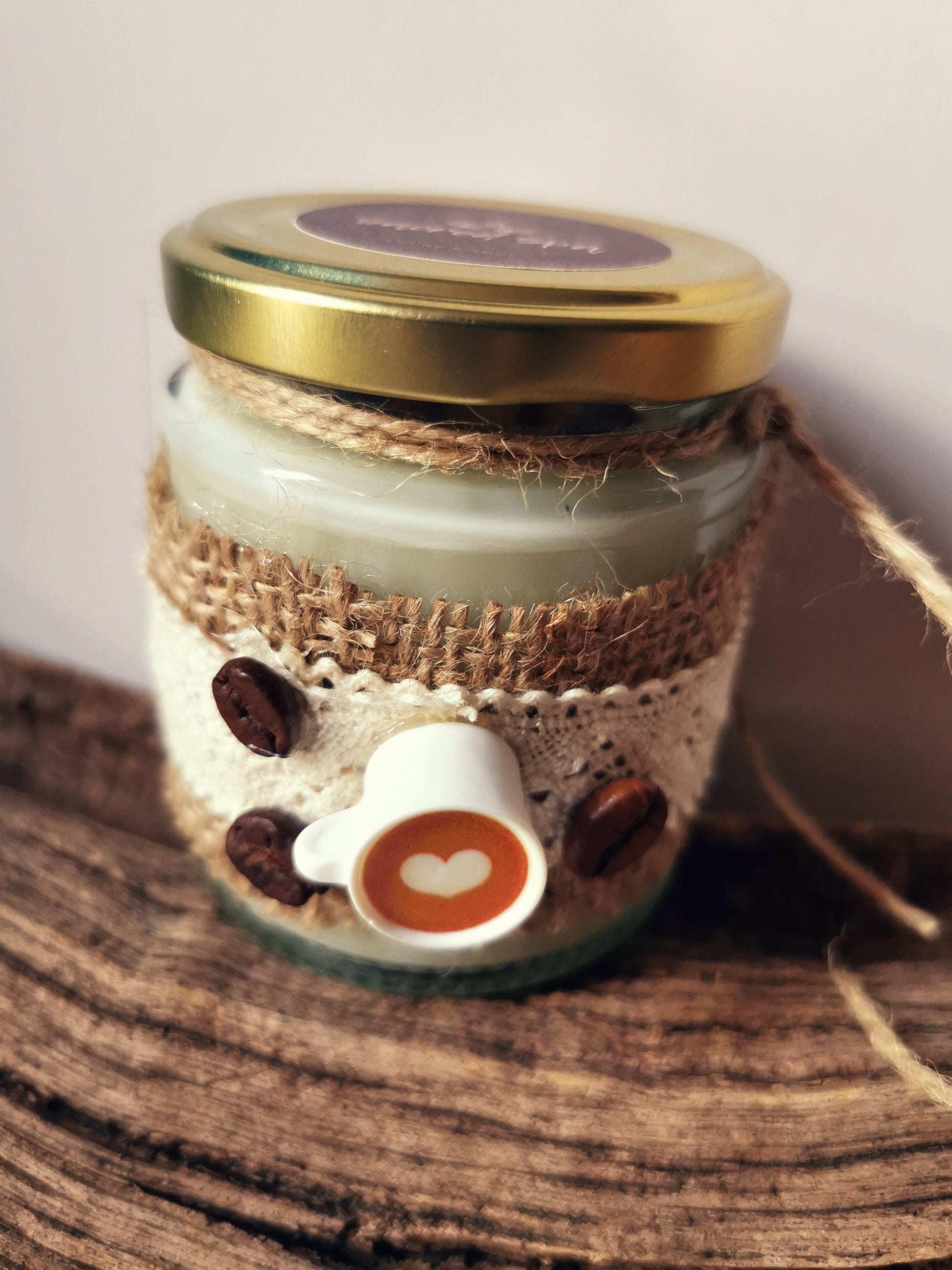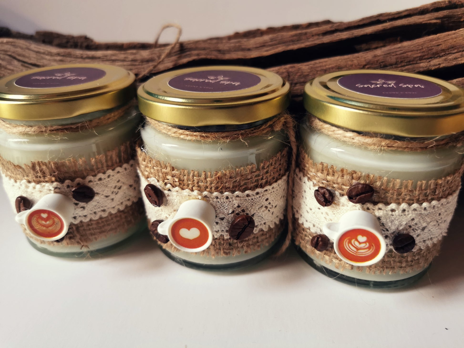 A rich and indulgent fragrance that brings the comforting aroma of your favorite coffee shop into your home. Our Rustic Collection soy candles are hand-poured with care, using 100% natural soy wax and certified fragrance oils. Each candle is beautifully and individually decorated, giving it a charming handmade touch that makes every piece unique.