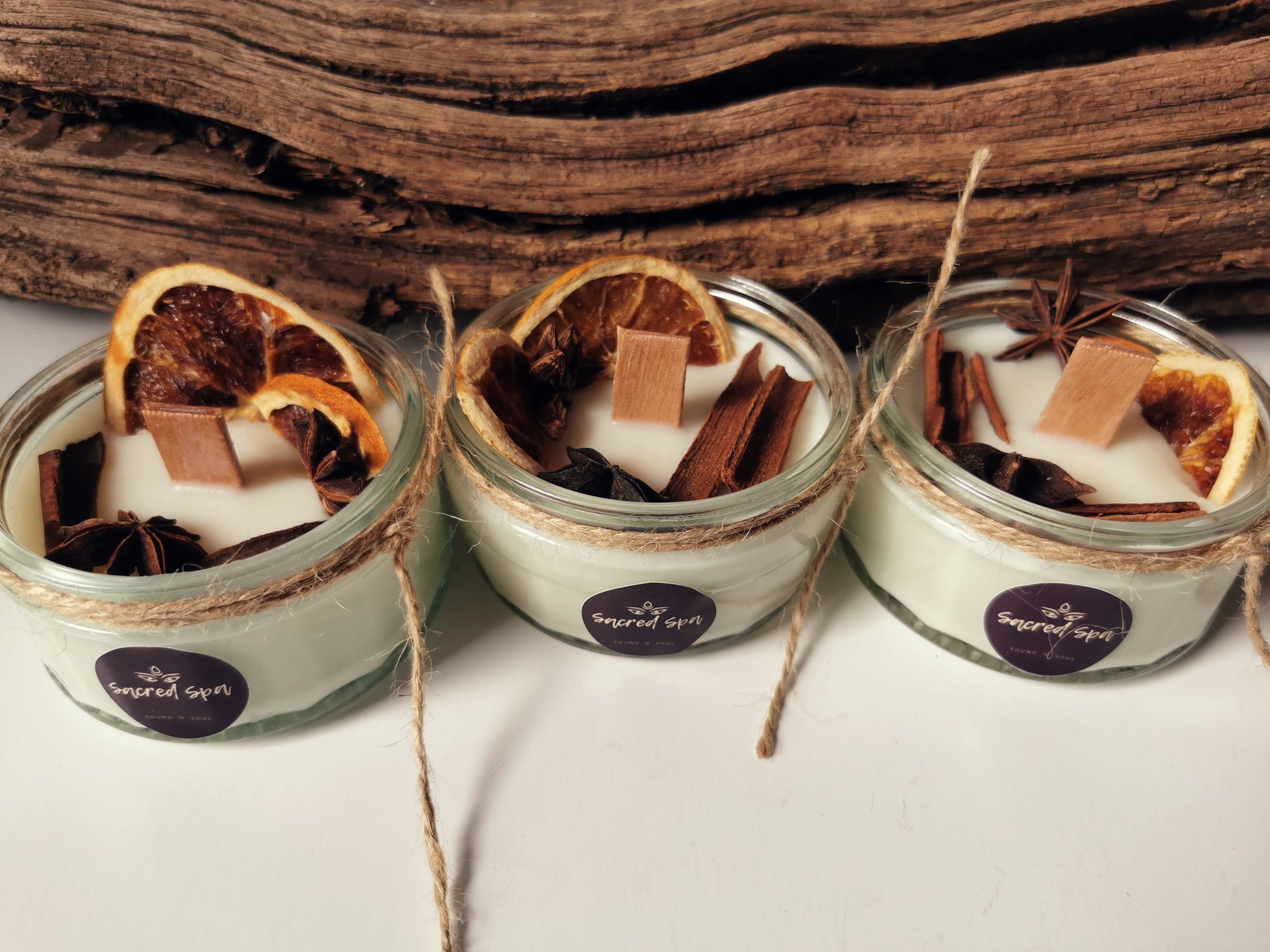 Rustic Soy Candle – Orange & Cinnamon (120 ml, Wooden Wick)