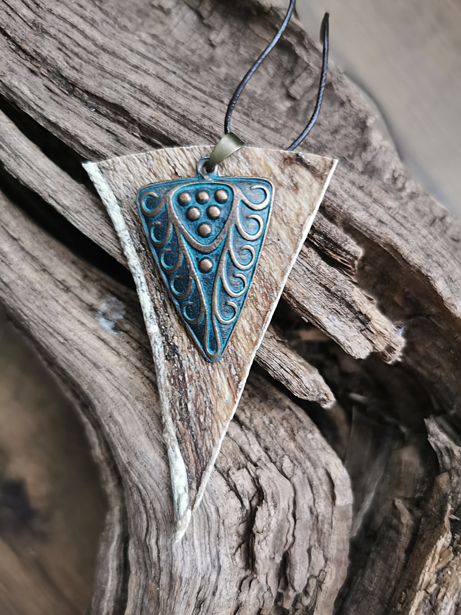 Handcrafted from ethically sourced horse leather, reclaimed with care and intention, this necklace holds the raw essence of the wild. The bronze-toned pendant echoes the deep hues of the forest floor – rich, fertile, and alive with unseen life.
